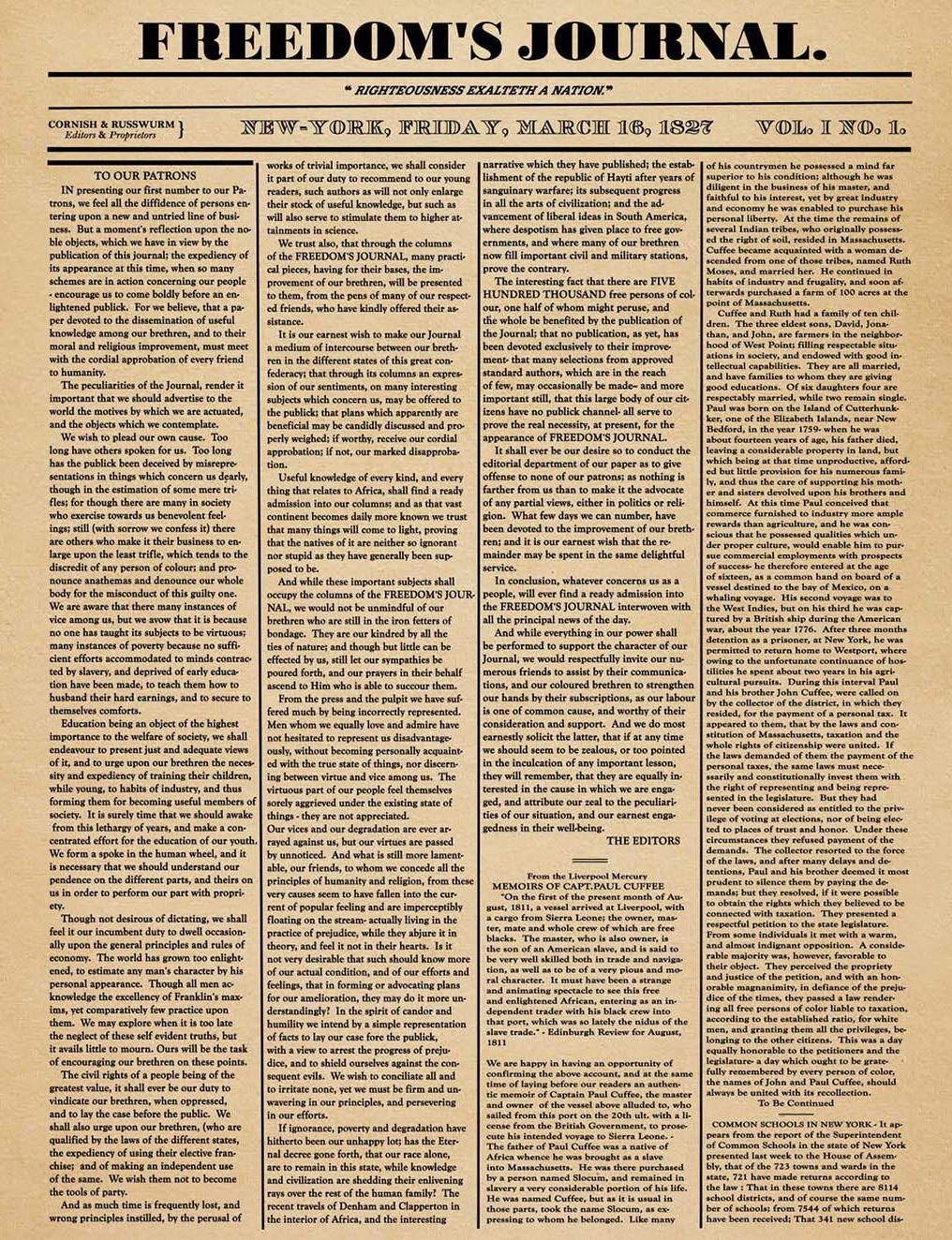 It won’t be easy. It wasn’t easy in 1827 when FREEDOM’S JOURNAL exploded into the American conscience. But fear never moved a mountain. And we’ve got mountains that need moving.