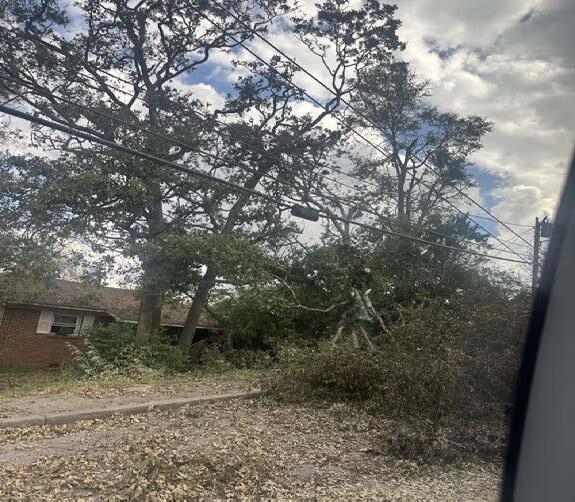 The second stop on her visit was to the Tara Heights neighborhood where trees could be seen resting on top of homes and power lines were in the streets. Harris greeted a family of five, hugging and comforting the mother in the process. She spent several moments with the family before making her way over to address the media. Harris announced that