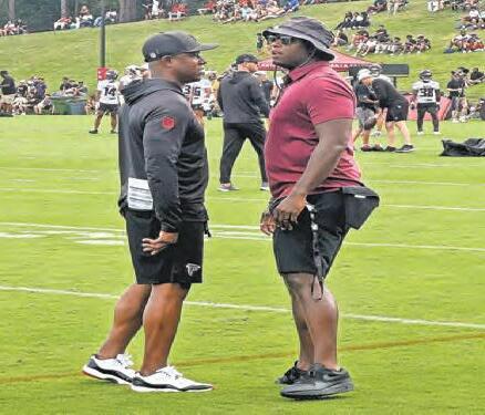 The cast of The Pivot podcast was also in Flowery Branch. A popular podcast that features former NFL players, former Pittsburgh Steelers free safety Ryan Clark is one of the show’s stars. Clark greeted Falcons head coach Raheem Morris with a bear hug and proceeded to walk on and off the field while a camera crew followed him and his co-hosts around the sidelines.