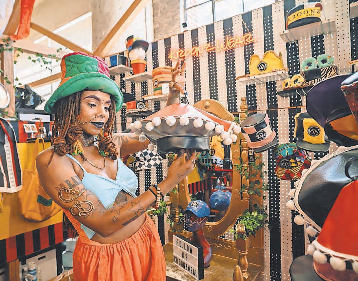 African-inspired marketplace with handcrafted goods, traditional clothing, instruments, and food vendors that is free and open to the public, creating an accessible entry point for community members to experience the celebration.