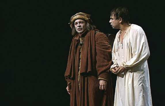 L’évènement de ce Tartuffe, c ’est d’abord la rencontre, jamais concrétisée jusqu’alors, entre deux monstres des planches Jacques Weber incarne un Orgon vigoureux, tout en colère contenue, face à Pierre Arditi en Tartuffe narquois et pétillant, volontiers concupiscent Le décor, tout en rondeurs et blancheur, sert aussi bien les personnalités douce d’Orgon et insaisissable de Tartuffe Ils sont accompagnés par des comédiennes au diapason, Isabelle Gélinas en Elmire dangereusement séduisante et Manon Combes en pétulante Dorine A la baguette, le grand metteur en scène allemand, Peter Stein.