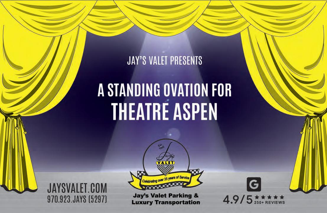 There are many ways to engage with Theatre Aspen, and your support means so much. Choose the program or project that matches your interest, or just give us a call to discuss a customized gift. Each program you choose includes a variety of bene ts and recognition. Give today or learn more by contacting our development department at 970.925.9313.