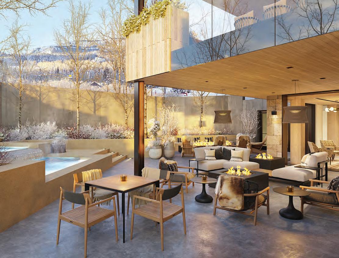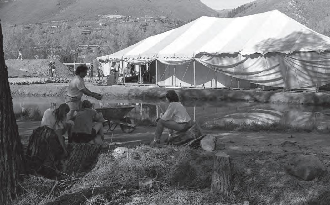 With the next 40 years in mind, the organization is proposing to build a permanent year-round theater on the idyllic riverside site where its tent is currently housed. Along with a larger venue—increasing capacity from the current 199 seats to 276—the new space would add amenities such as dressing and green rooms to replace the trailers and gravel lot that cast and crew currently use beyond the tent aps. Renderings by architect Charles Cunni e include an auditorium that would be built partially belowgrade beneath an expanded grass plaza, retaining the alpine aesthetic of the postcard-worthy site bordering Rio Grande Park and the John Denver Sanctuary. Still early in the process, the plan received a positive response in its rst public airing before the Aspen City Council in August 2022. “Adding a traditional theatrical venue to Aspen’s already formidable list of venues would be a real advantage to the community,” Bernstein adds.