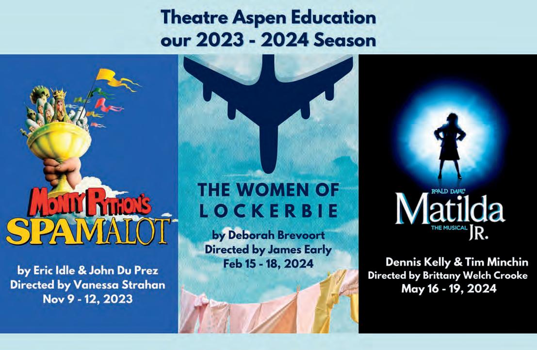 For its milestone 2023 summer season, Theatre Aspen is hosting two main-stage musicals in the Hurst Theatre in Rio Grande Park, its rst main-stage play in several years, and special anniversary events: