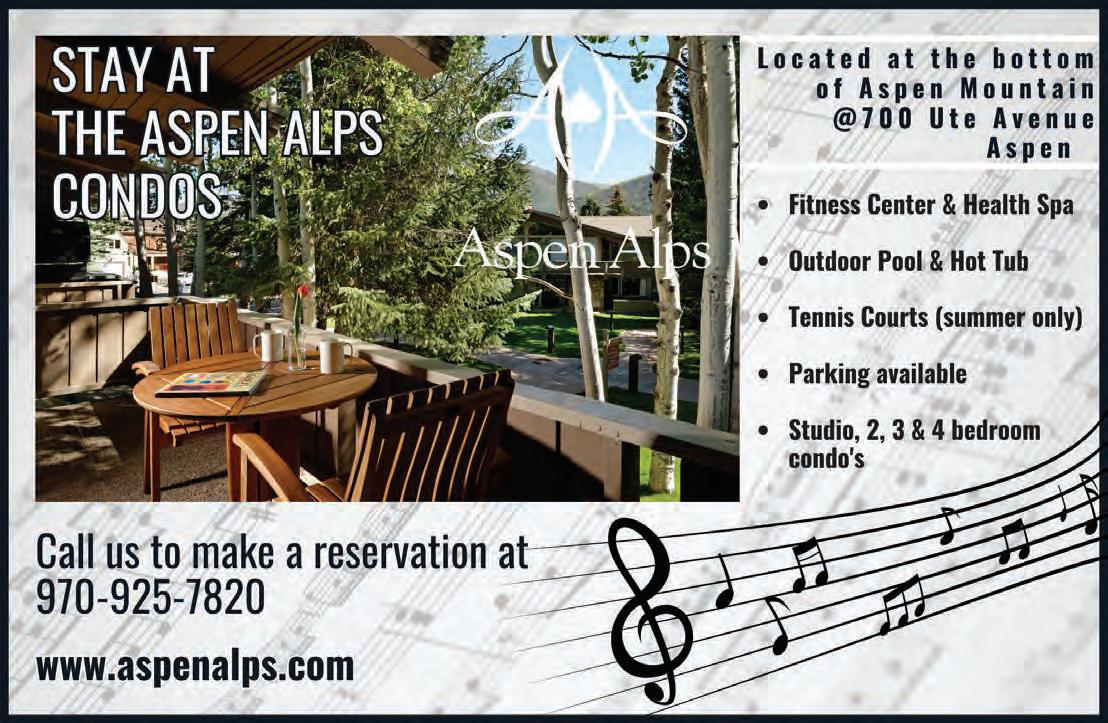 Theatre Aspen’s Summer Cabaret Series returns for another season at Hotel Jerome. This summer favorite will take place on July 2, August 6 and 13, o ering a trio of unique and unforgettable performances. New this summer, the Brunch Cabaret, see the website for details.