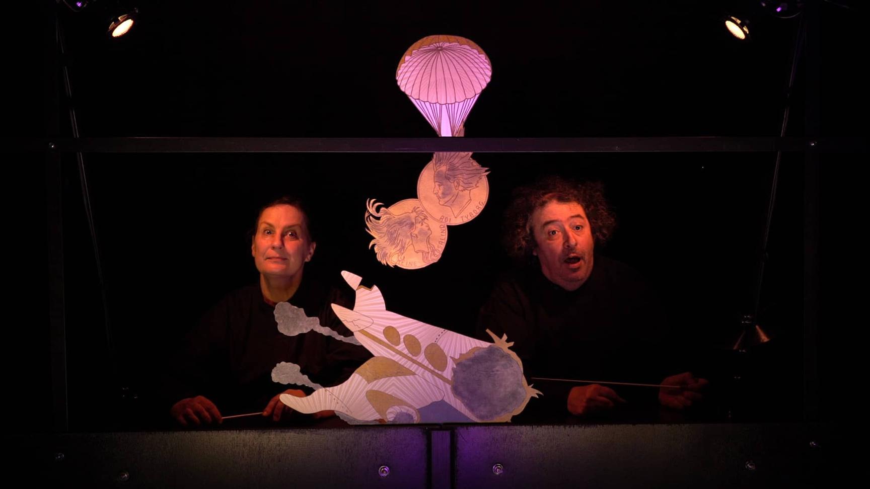 À Krâpâhute, la vie s’écoule à la douce, chacun e est éduqué e, nourri e, logé·e, diverti·e et soigné·e. Mais un beau jour, le diable, inspiré par la cupidité d’une sacrée bande de crapules, va joyeusement semer le grand bazar ! ! À Krâpâhute, un enfant malencontreusement devenu roi, conduira sous l’emprise d’une grande bêtise, son royaume vers le néant Krâpâhute est un conte pictural, un hommage aux maîtres conteurs qui inspirent la compagnie depuis ses débuts Dans ce théâtre de papier, deux conteurs manipulateurs valsent allègrement d’un personnage à l’autre pour nous livrer un spectacle familial, singulier, mêlant récit et arts plastiques Planches, collages, pops ’ up et jeux astucieux de manipulations, dessinent avec décalage une fable contemporaine où le bonheur des autres fait parfois le malheur des uns