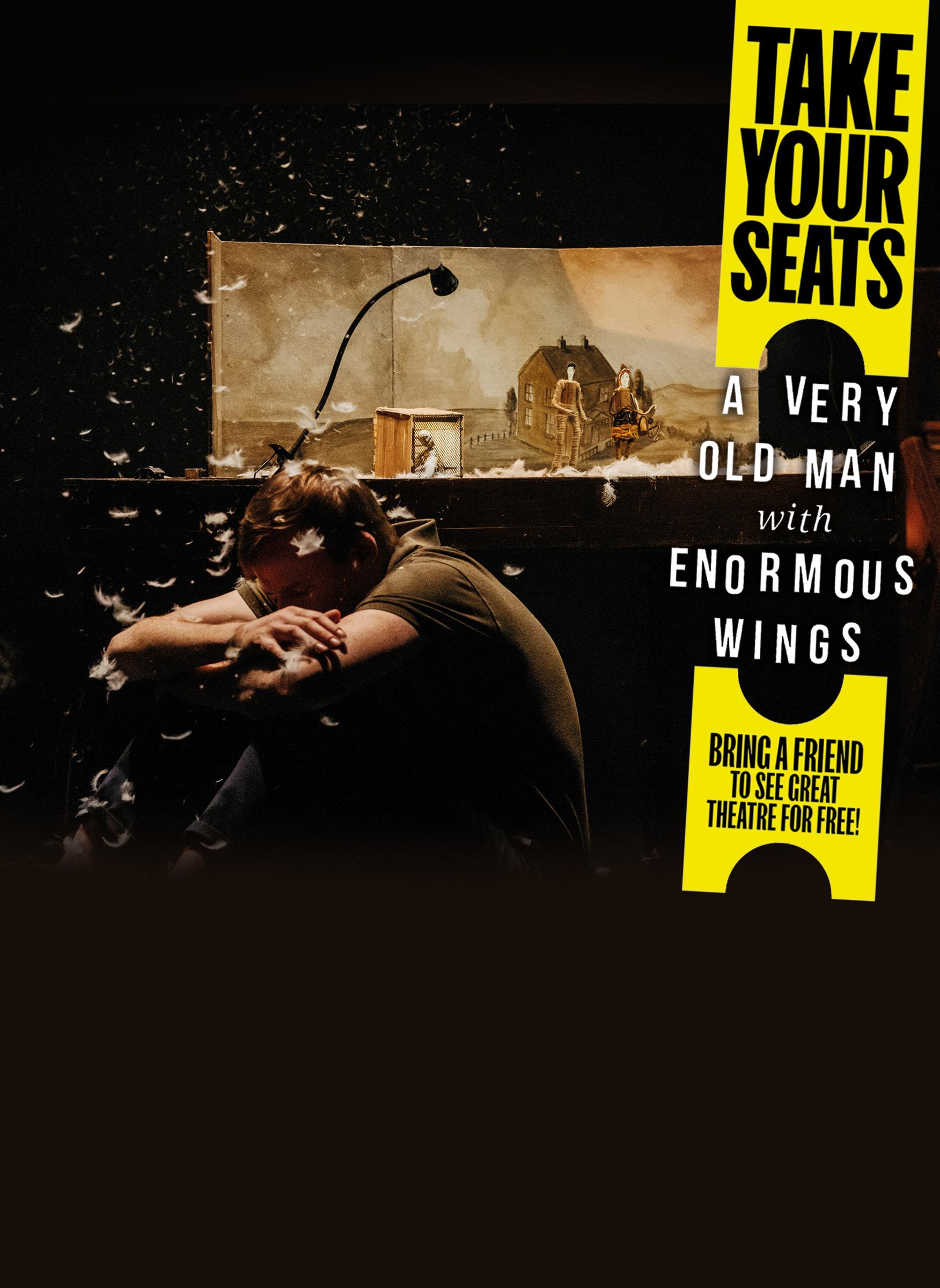 In a kitchen, in a theatre, two storytellers and their audience find something remarkable - a very old man with enormous wings. After consulting with the neighbour - who’s an expert on all things magic - the couple decide to shelter him in the chicken coop and feed him with food scraps. A wise woman says he’s an angel. The priest says he’s an imposter. Pilgrims flock to see him.