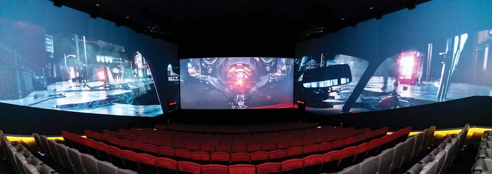 The large Spectral screen was supplied and installed by Scrabble, the integrators for the multiplex, who also installed the two Sharp/NEC NC3541L 4K 35,000 Lumen RB projectors needed to light the screen.