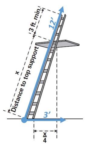 For example: If the ladder is 12 feet high the base should be moved away from the wall or other sturdy structure by 3 feet.