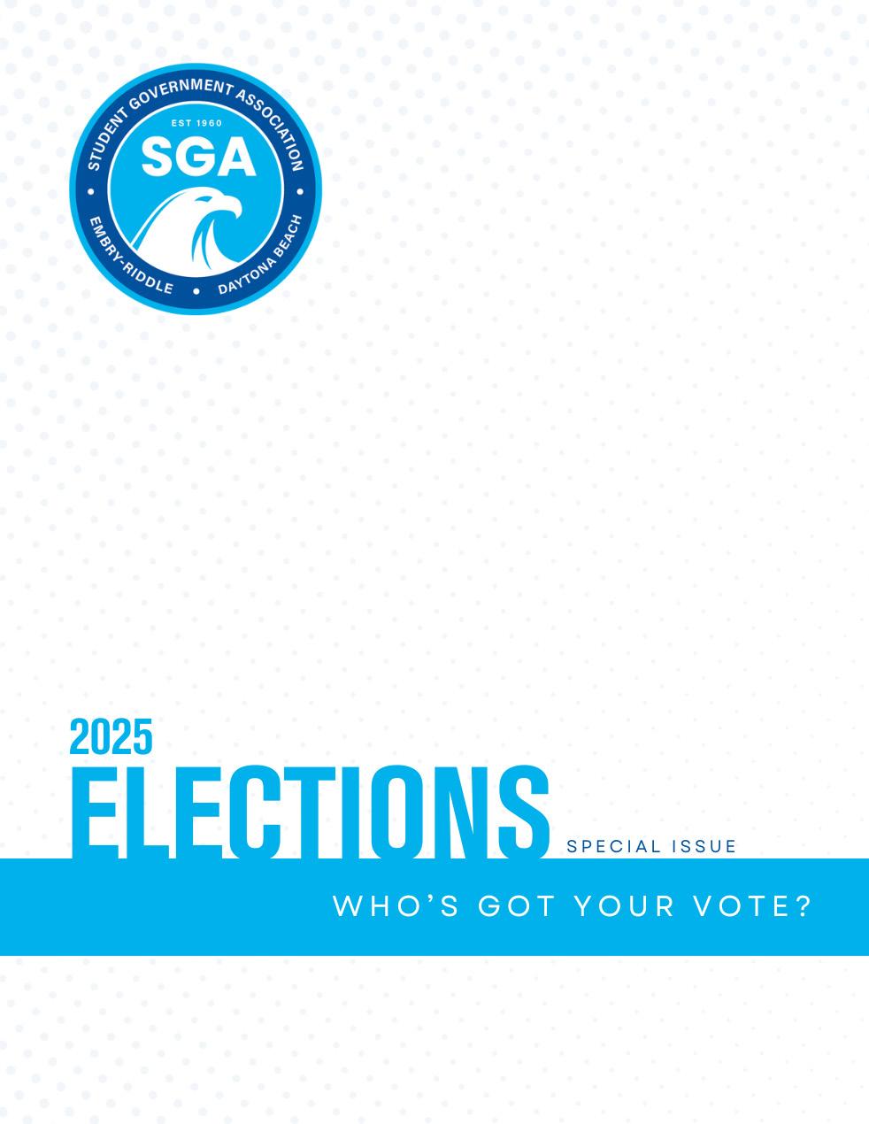 This magazine is published alongside an online Elections Website and Elections Instagram profile. For questions or concerns regarding this magazine or any SGA Elections marketing or information products, please contact the Supervisor of Elections at dbsgasoe@erau.edu.