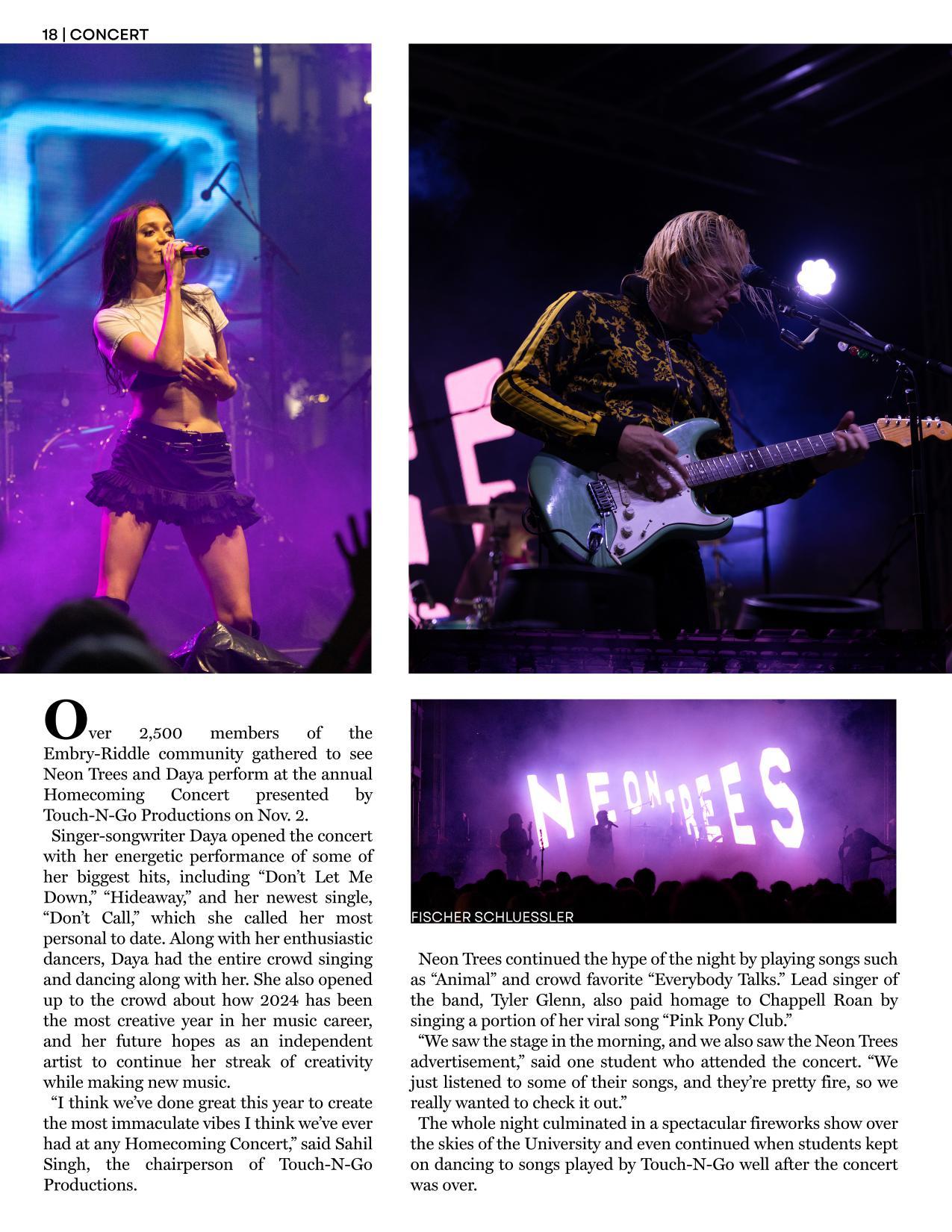 The vibrant atmosphere continued into Saturday, Nov. 2, as the weekend made its way to the main event—the highly anticipated concert featuring Neon Trees and Daya. Their exciting performances quickly became a crowd favorite, with students claiming it was the highlight of the entire weekend. As Touch-N-Go Productions packed up the stage at the end of the night and student/fans made their way back home, the 2024 Homecoming Weekend had come to a close. As we look ahead to next year, one thing is certain: the memories made this weekend will continue to inspire and energize the Eagle family, and we can’t wait to do it all over again. Until then, here’s to the lasting memories we made and the excitement of Homecoming Weekends to come as our fellow Eagles help vote next year’s production into planning.