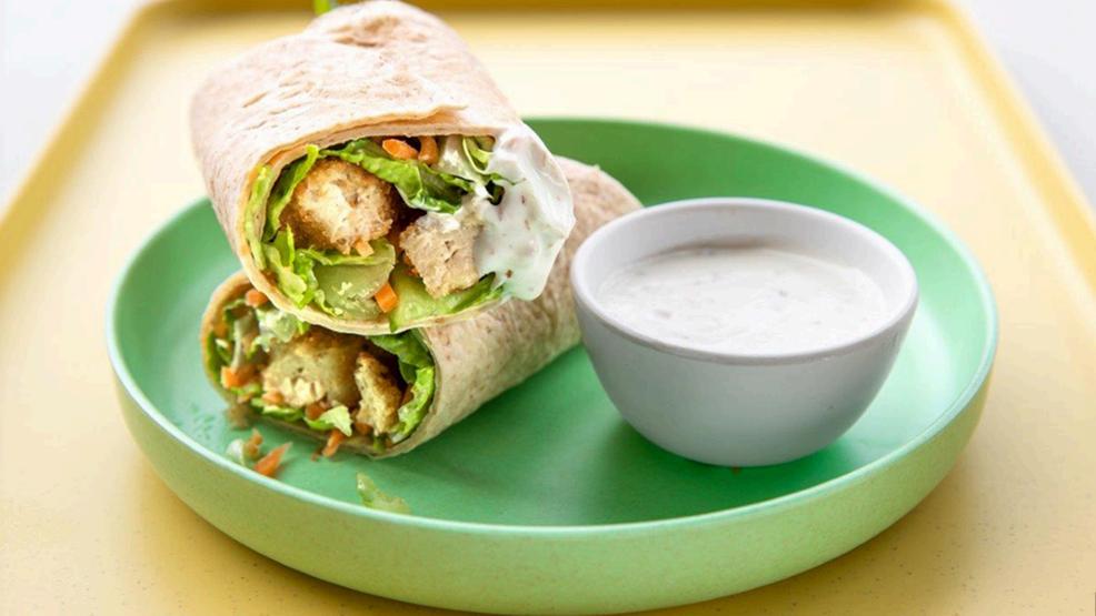 Description: Hot wing sauce packs a flavorful punch in this plant-based twist on a buffalo wrap featuring Rebellyous Kickin’ Tenders