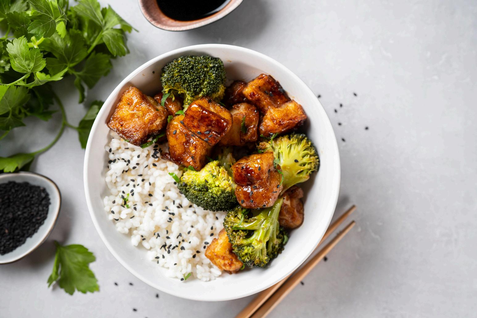 Description: This crispy teriyaki tofu bowl is simple, flavorful, and delicious. Customize the vegetables to add variety!