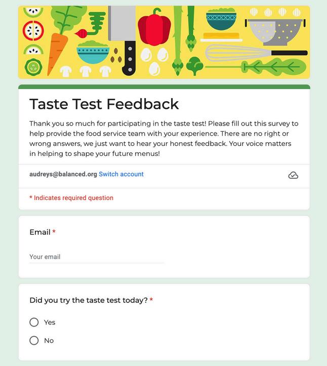 Thank you so much for participating in the taste test! Please fill out this survey to share your experience There are no right or wrong answers we just want your honest feedback!