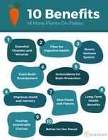 Up to 97% of American children do not eat enough fiber, a nutrient found only in plants. Plants are rich in fiber, vitamins, and minerals that promote digestion, immunity, and steady energy. Plant proteins are cholesterol-free and lower in saturated fats than animal proteins. Early exposure encourages children and adolescents to enjoy fruits, veggies, and whole grains throughout their lives, helping to lower the long-term risk of diet-related diseases such as high blood pressure and diabetes.