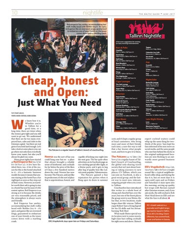 sound like a typical neighbourhood coffee shop, and during the day it is, but on most days it is open until 11pm and on Fridays and Saturdays it stays open into the morning, serving up quality hot wraps with flavours named after Estonian women, and, if you ask nicely, the still-exclusive Rob Shot! Head down to Elli’s and see what the fuss is all about. ■