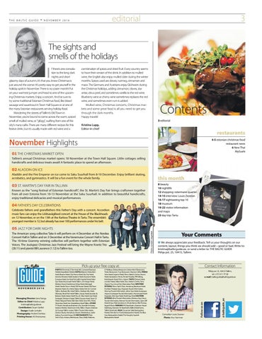 Managing Director: Jane Konga Editor-in-Chief: Kristina Lupp kristina@balticguide.ee Contributors: Stuart Garlick Design: Evelin Linholm Photography: Andrei Chertkov Printing House: AS Kroonpress