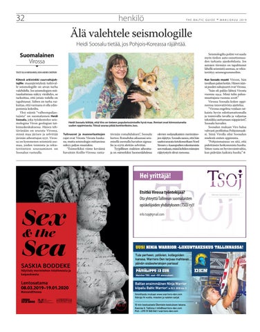 Heidi Soosalu kiittää, että Viro on tieteen popularisoimiselle hyvä maa. Ihmiset ovat kiinnostuneita uuden oppimisesta. Töissä seuraa pitää konttorikoira Juss. Tulivuoret ja mannerlaattojen
