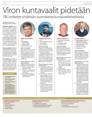 Viron kuntavaalit pidetään TBG esittelee yhdeksän suomalaista kuntavaaliehdokasta.