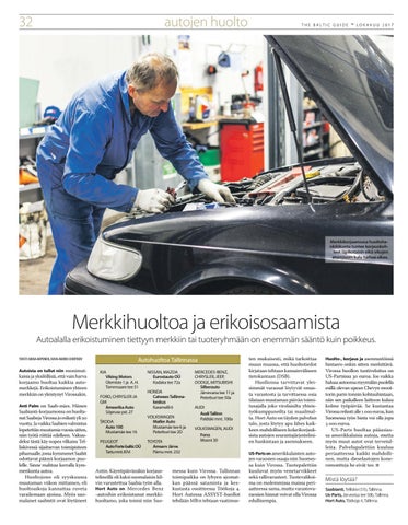 Merkkihuoltoa ja erikoisosaamista Autoalalla erikoistuminen tiettyyn merkkiin tai tuoteryhmään on enemmän sääntö kuin poikkeus. TEKSTI JUKKA ARPONEN, KUVA ANDREI CHERTKOV