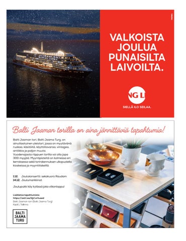 1.12. Joulukonsertti: sekakuoro Raudam 14.12. Joulumarkkinat Joulupukki käy kylässä joka viikonloppu! Lisätietoa tapahtumista: https://astri.ee/bjt/uritused Balti Jaaman tori (Balti Jaama Turg) Kopli 1, Tallinna