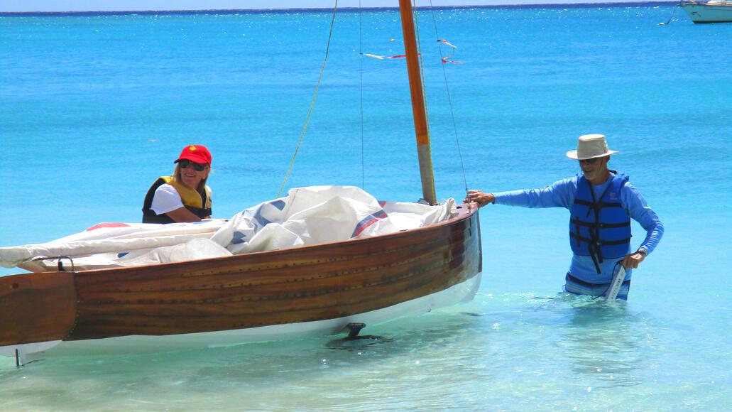 Unfortunately, it did not end well as 20 minutes out, the wind caught the sail and the boat capsized. A passing catamaran came to the rescue and many thanks to Dave and Carolann of Cat-O-Nine Cruises for all their help with bailing and getting the dinghy back to the boatyard. The Commodore had a long swim!!