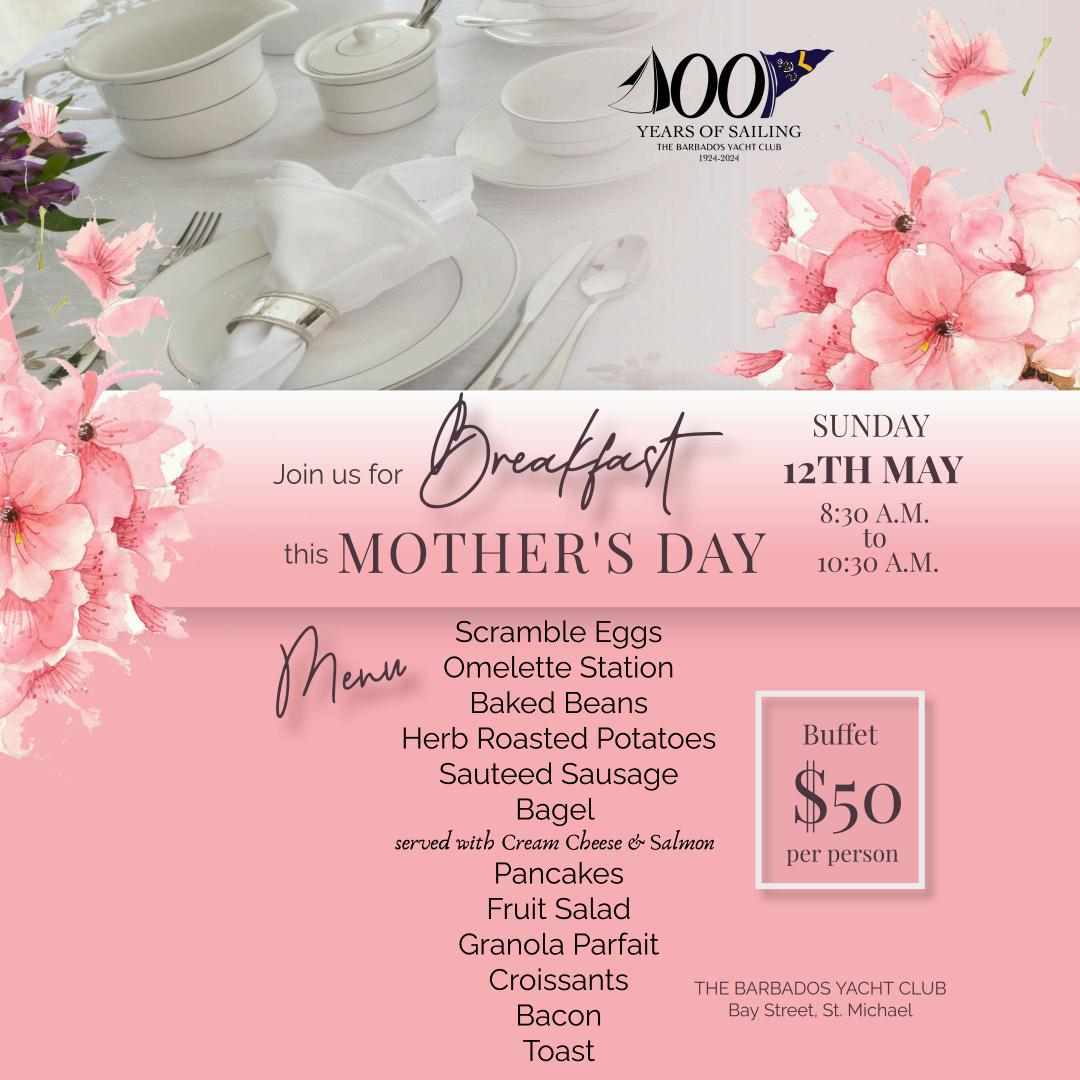 Sunday, May 12th is Mother’s Day. The club will offer a special Mother’s Day breakfast buffet and a grand buffet luncheon in the Ballroom.