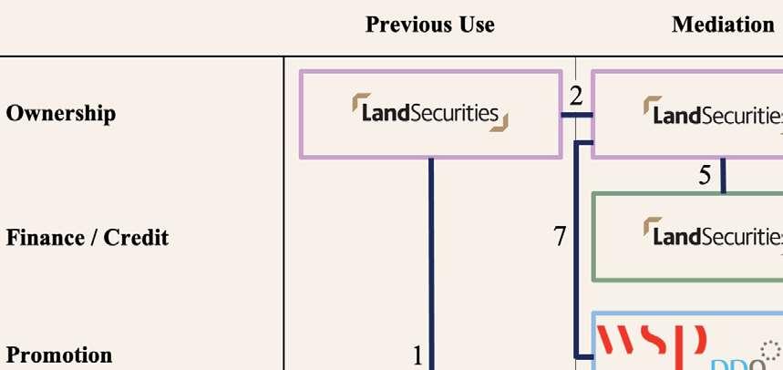 A potential shortcoming of using thismodel is that the original modelwas used for land passing from non-urban to urban use (Bryant et al., 1982). However, the adapted model considers a holistic range ofactors involved and indicates primary and secondary actors realistically reflecting The Gherkin's development. Furthermore, Swiss Re is still placed in a central position in actors' interactions, which accurately depicts Swiss Re as the central figure and the contractors' significance within the development.