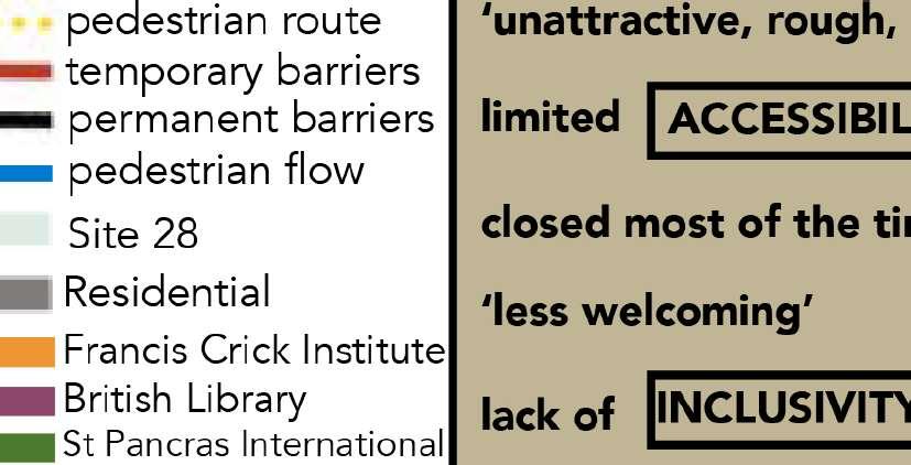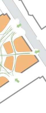 collaborativeworkingenvironment, allowingnewstart-upstoshareideas forasuccessfulbusinesslaunch” RestructuringRoadNetwork StreetHierarchy Streetswillberestructuredintofourdifferenthierarchiesandpedestrianswillbeprioritised ineachsectionwithwiderpavementforstreetsthathaveallaccess,pedestrian-onlystreets willbeintroducedalongwithdedicatedcyclelanetoinmajorityofthestreetswithin Poplartoencourageresidentsandoutsideuserstouseasustainablemodeof transportationsuchascyclingandwalking. AimingtocreateacirculareconomywithinPoplar,enforcingandgroundinglocaleconomythroughproviding andsourcingjobslocally.Upgradinglocalskillsetwithtrainingschoolsandreinforcinglocaleconomyatevery levelwiththekeystrategies.PromotinginclusivityandconnectivitythroughoutPoplar,maintainingitssense ofidentitythroughattractingresidentstoremaininPoplar. StreetSections IntroducedlocalindependentstoreonlytoPoplarHigh StreetandEastIndiaDockRoad,preventglobalisation andmaintaindistinctivenessoflocalarea.Toincubate andhelplocaleconomygrowth,thesetwoareawillbe reservedforlocalbusiness.Bystrengtheningthelocal economy,itcanalsoattractthetouristsector,with distinctivenessofindividualshops,sellinggoodsonly availableinPoplar. Introducesocialenterprisethatemploylocalresidentwith lowincomeandlackofskills,provideonthejobtraining andtackledeprivation,andprovidelabourforce. Utiliseresidentialbuildinggroundanduppergroundfloor levelforretailoroffice,placenecessitiesgoodsinthesearea suchassupermarket,banks,etctoprovideamore convenientamenitiesforlocalresident.Thesestoresadd valuetopropertiesasthesurroundingareaandamenities aremoreconvenient. ImprovingTransportNetwork 3 1 2 4 5 Allaccessroad 1.SufficientSpaceforVehicleand Pedestrian 2.SustainableOfficeConcept 3.Co-WorkingSpace 4.PublicSpace 5.ResearchFacilities GrowingLocalEconomy Allaccessroadwith 20mphspeedlimit Pedestrianand cyclistonly PedestrianonlySharedStreet ImprovingLegibility KeySites Conclusion Theinclusivitypillarenhancesthesenseofplace,communityandencouragesvitalitywithin Poplarthroughencouraging24hoursactivities,attractingvisitorstoPoplarandincentivizing residentstoremaininPoplar. Theconnectivitypillarstrengthenslocalpermeability,walkabilityandaccessibilitywhilst capitalizingonthecentrallocationofPoplaropportunityforsynergywithCanaryWharf.It encouragesvitalitywithinPoplarthrougheasieraccessandapedestrianfocused development,encouragingflowofmovementwithinPoplar. Thesustainabilitypillarexpandsupontheexistingblue-greennetworkandstrengthenslocal greenspaceaccessibility,reducingtrafficandpromotessustainableinterventionswhilst mitigatingfloodriskwithinPoplar.ItencouragesvitalitywithinPoplarthroughencouraginga sustainable,healthylifestyleandbridgingtheconnectionbetweennaturalandbuilt environments. Upgradingcyclenetwork Improvingbusnetwork Revitalising Poplar Creatingadistinctiveneighbourhoodcapableof counteringgentrification,segregation&crimerevitalisingPoplar. ChrispStreetMarketby2050 AspenParkby2050 WaterfrontParkby2050 EastIndiaDocksRoadby2050 AspenParkby2050 OvercrowdingisakeyissueintheTowerHamletsHousingStrategy(2016-21). Itexplainsthatlackofhousingchoicesmeansfamiliesareforcedtochoosebetweenlivingin overcrowdedconditions,orbeingforcedtouproottoacheaperarea. Topreventthedisplacementofresidents,lowerriseflatscouldbeconvertedtolargerflatsor mid-riseandhighriseresidentialbuildingswithvaryingcontextheightstoaccommodatelarger householdsizes. Thoughmodernizedresidentialflatsaretobeexpected.Thereshouldbeanemphasisonnew projectsundertakenforhousingmakinganefforttokeepwithexistingdesignandheritageinthe area. Withsucharelianceonsocialhousing,allavailablesitesmustbeutilisedtosatisfydemand. JustoutsideBillingsgatemarketisanemptysiteonanisland,formerlyaMcDonaldsdrive-in restaurant. Disusedbrownfieldsiteslikethiscouldbeusefultoimplementmodularhousing,aspartofTower Hamletshousingplans.Thisistemporaryfamilypopupaccommodation. Itcouldalsobesoldtoprivatedeveloperstobuildhighdensityflats. WiththedensificationofPoplaralongwiththeincreasing Poplar,itisever-soimportanttoensuresustainabilityin developmentandreducethecarbonfootprint.Wherever possible,thenewdevelopmentsshouldaimtouse sustainablebuildingmaterialsandconsiderenergy efficiencyindevelopment. Duetothecostlynatureofsustainabledevelopment,the aboveproposalwillonlyapplytothemixed-usemidto highrisebuildingstripwithmainentrancesonPoplar HighStreetandApsnPark-blendingintothenature themeofthetwokeyareasandprovidingphysical cohesiongraduatingtowardsCanaryWharf. Variousroofgardenswithpondsandvegetationpatches areproposedontopofblocksofflats.Theycanbefound atRosefieldgardens,CottageStreet.LawlessStreetand NewbyPlace. Thiswillhelpreducetheurbanheatislandeffectby utilizinggreeninfrastructureontheroofsofbuildings whichwillabsorbheatandsunlight.Itwillalsoimprove theaestheticsoftheblockofflatsandprovidea communalspacefortheresidents.Furthermore,the retentionpondandgreenerywillabsorbrainwater, reducingrainwatercollectedontheroof. Accessibilitytourbangreenspaceis animportantcomponentofgreen infrastructureaswellasanasset towardsincreasingurbanquality, localresilienceandpromotinga sustainablelifestyle.Itisan opportunityandplatformforsocial interactionaswellasimproving physicalandmentalwellbeing,overall improvingsocialcohesion. Asidentifiedprevious,thereisalack ofaccessiblegreenspaceperperson withinPoplar,thereforewepropose anextensionofurbangreenspace withinPoplartoimproveaccessibility andsustainability,withthreemajor interventions. AccessibleGreenNetwork HeritageTrail ComfortablePublicSpace Connectingthepasttothefuture Theheritagetrailwillbebuiltwiththeintentionof connectingexistingsitesofdistinctivehistorical andculturalsignificancewithinPoplartonewly