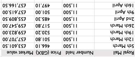 AngloAsianMiningAAZ:LSE60000£1.31£78,3008.32% TOTAL£529,68256.29%