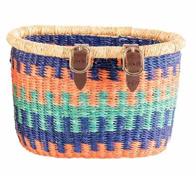 Three standard and three children’s size bicycle baskets, woven from veta vera grass in northern Ghana.