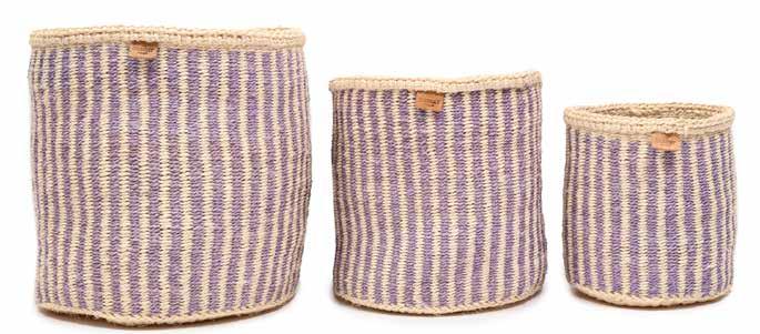These sturdy baskets each come in three sizes, each one totally unique, the specific pattern decided by the weaver herself, taking inspiration from her natural surroundings.