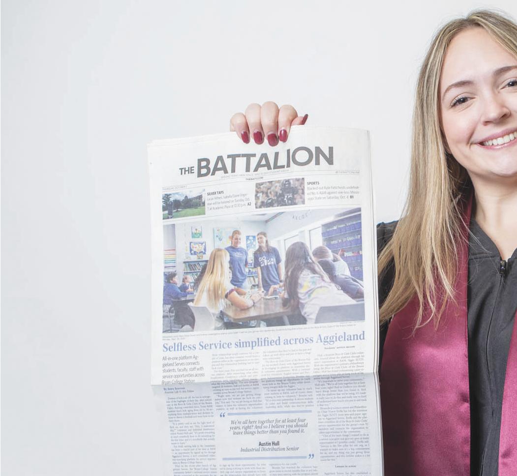 writing features. Coming into this semester, I made the decision to transition over to The Battalion, which at one time was daunting but now seemed like the perfect place for me.