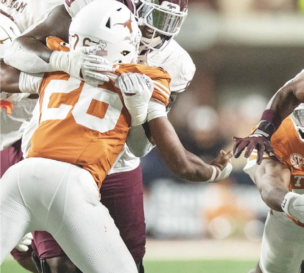 from Temple High School. Junior linebacker Taurean York is the eyes and ears for defensive playcaller and coach Mike Elko. With green-dot duty,York is going to be responsible for diagnosing the Miami o ense before the Hurricanes can graduate from tropical storms. With 68 combined tackles, 11 tackles for loss along with a single sack,York was named to the 2025 All-SEC Third Team. What he doesn’t have in eye-popping measurables or athleticism,York more than makes up for in game IQ. York is a football intellectual and knows where to be in order to halt opposing o enses; he’ll need to be fully locked in against Miami’s lethal aerial attack.