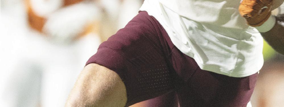 The 25 passing touchdowns Reed boasts could be even greater if it weren’t for an extremely spotty deep ball that has often overthrown wide-open receivers down eld. As a dual-threat talent, Reed has also accumulated 466 yards and six touchdowns on the ground; he’ll need every bit of that mobility to avoid the Category 5 Hurricane pass rush. The Aggies’ o ensive livelihood will depend on Reed being consistent through the air and his ability to stay composed under pressure.
