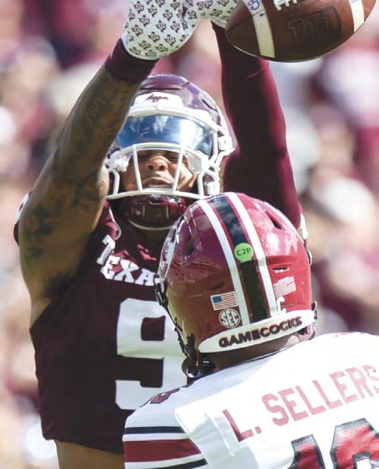 The only Aggie to nd the end zone in last season’s Lone Star Showdown, thanks to a heroic pick six, senior cornerback Will Lee III has guarded opponents’ top receivers all season. The man known as “The Blanket” is not to be slept on, as he leads a Maroon and White secondary that has only allowed opponents to complete 57.4% of their passes, the third-lowest mark in the SEC.