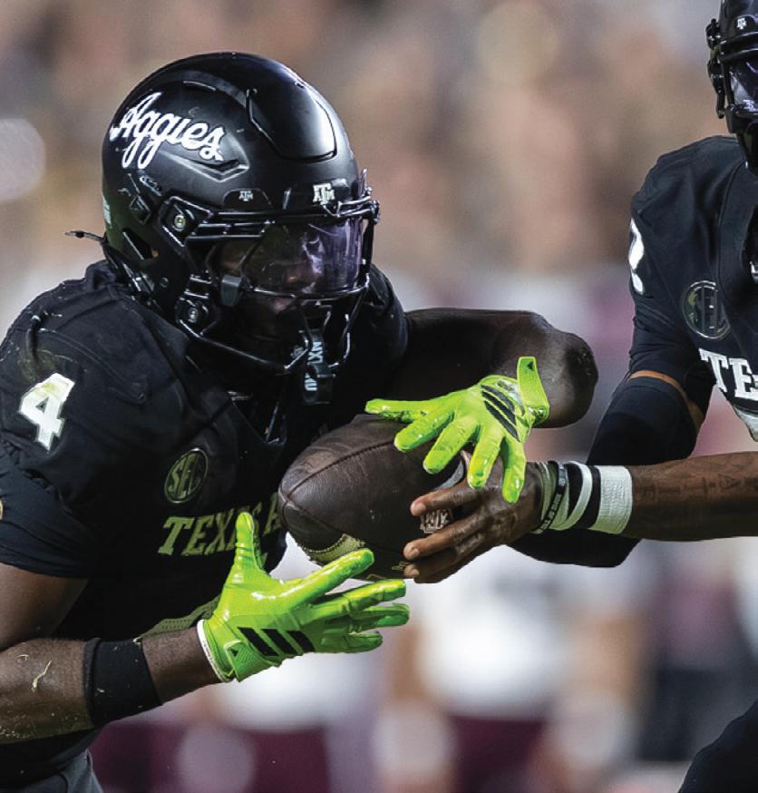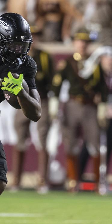 The Aggies have an embarrassment of riches in the running back room, with their RB2 in redshirt sophomore RB Rueben Owens II looking more like a co-RB1. The El Campo native has waited patiently for a return to the eld after a leg injury kept him out of the better part of the 2024 season. Now fully healthy, it seems like there is nothing he can’t do.