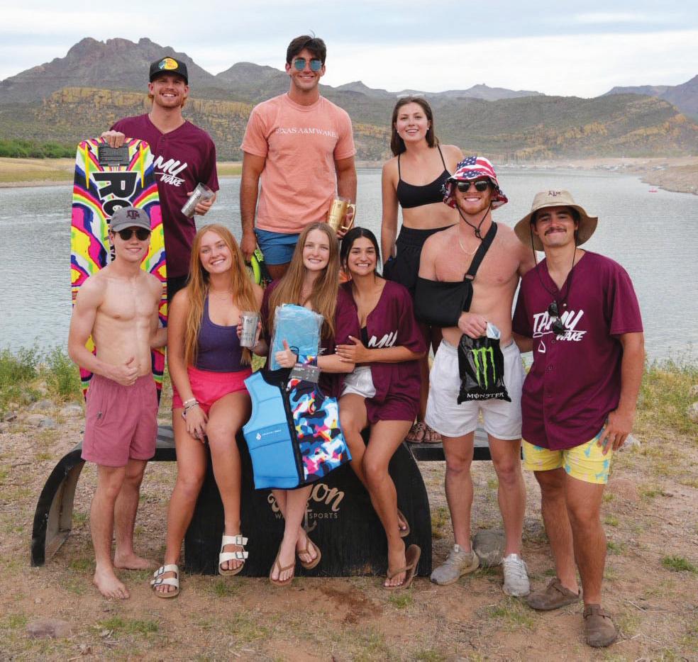 As “Sick Love” by the Red Hot Chili Peppers plays at full volume, 10 members of Texas A&M Wakeboarding, or TAMU Wake, ght for seats on the crowded wake boat cruising across Lake Bryan on a hot Saturday afternoon, an activity done so frequently, it’s ritual.