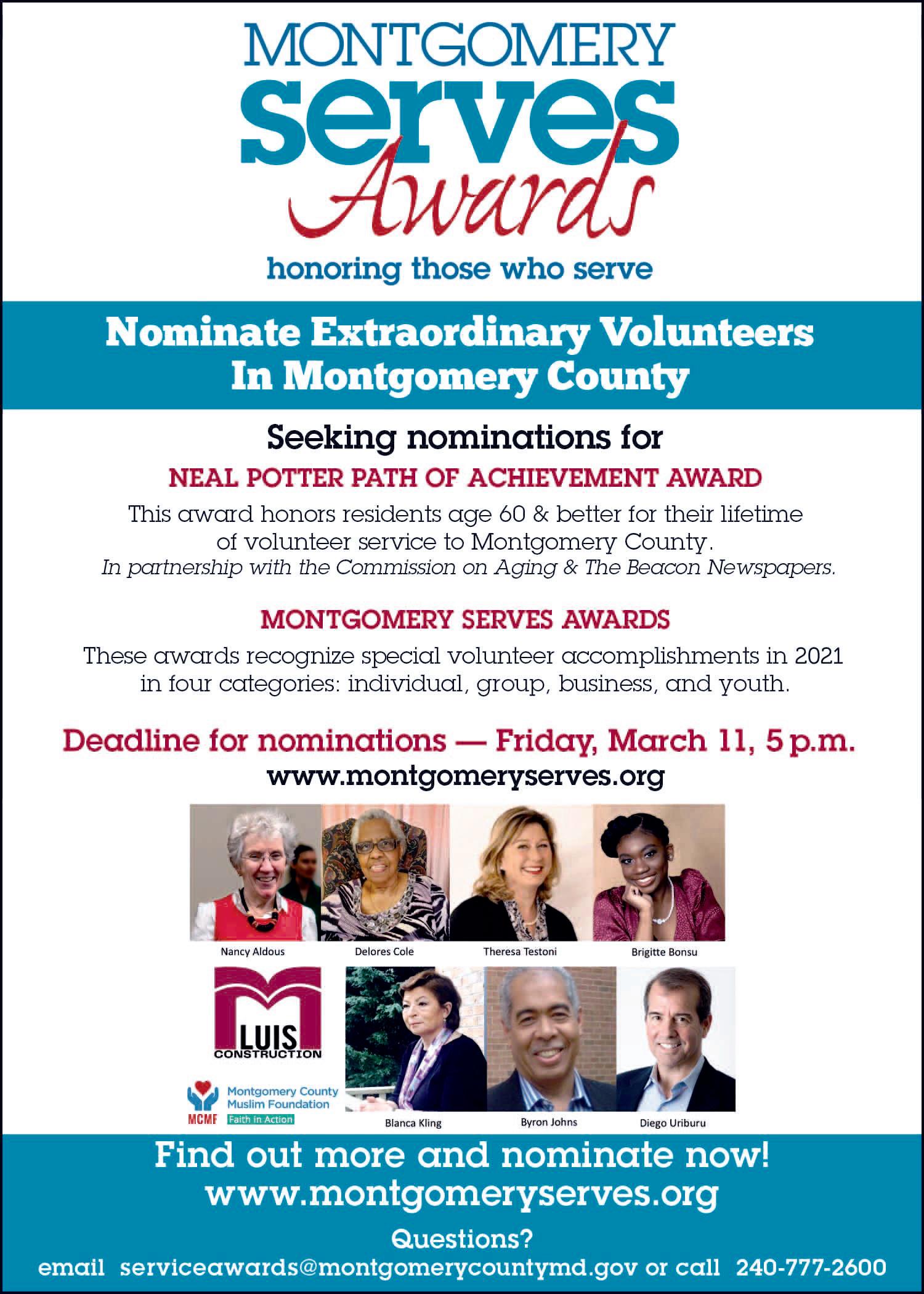 Deadline for nominations –Friday,March 17, 5pm www.montgomeryserves.org