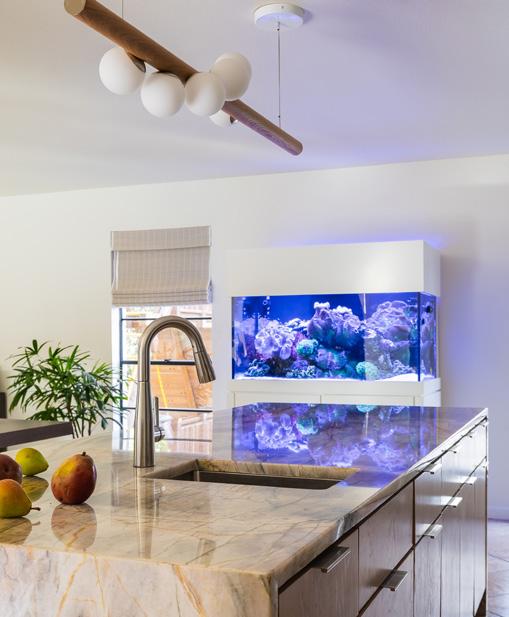 I can’t stop thinking about a certain light fixture in this month’s Open House section. Suspended above one of the kitchen islands, individual spheres wind around a sleek wooden base. The whole home is a vision, but that light? I am in love. Pg. 26
