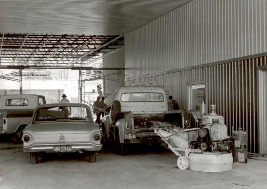 Workers construct the bus terminal at Starr and Chaparral, July 20, 1964.