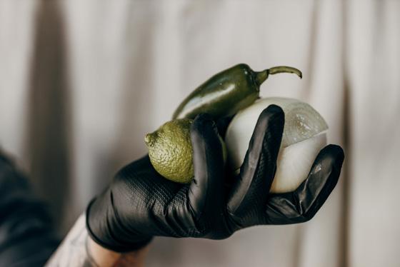 On a Tuesday evening back in late September, our Art Director Jarred Schuetze, Lead Photographer Rachel Benavides, and I arrive at Dokyo Dauntaun. The hostess smiles under her mask (you can always tell by the eyes), takes our temperatures, and then leads us to a booth in the back of the restaurant where a saturated pink light illuminates a mural painted by local artist Hector Marroquin. It’s the first time any of us have actually set foot inside a restaurant since mid-March, and although it feels a bit taboo, a sense of comfort quickly sets in. We’re in good hands, after all.