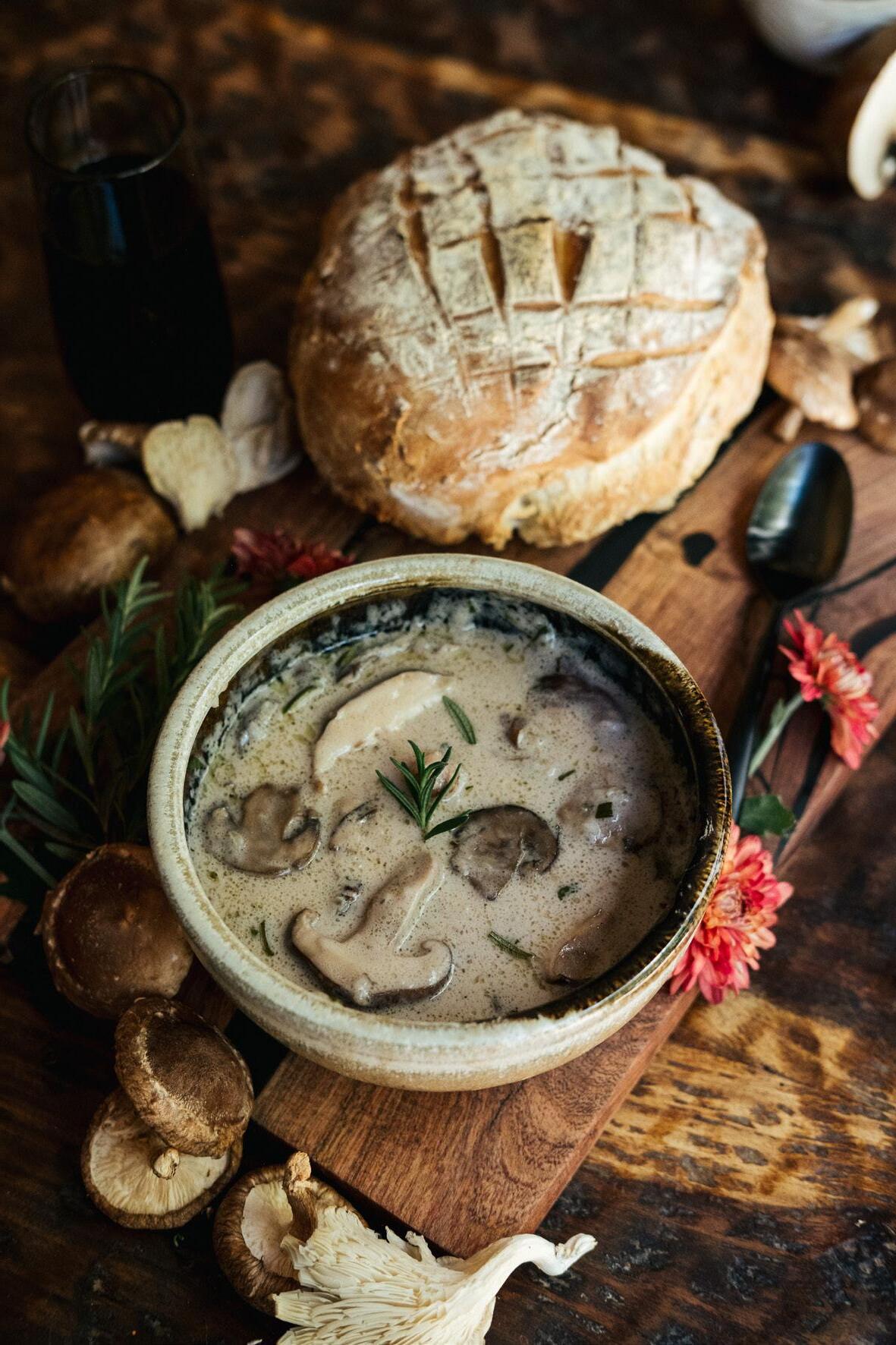 Deglaze pan with wine and cook 3 minutes, while scraping the bits from the bottom of the pot. In a small bowl, combine flour and 1 cup broth, whisking until flour dissolves. Add flour mixture to pot and stir frequently, until mixture is bubbling. Stir in remaining ingredients and simmer for 10 minutes, until mushrooms are fork tender.