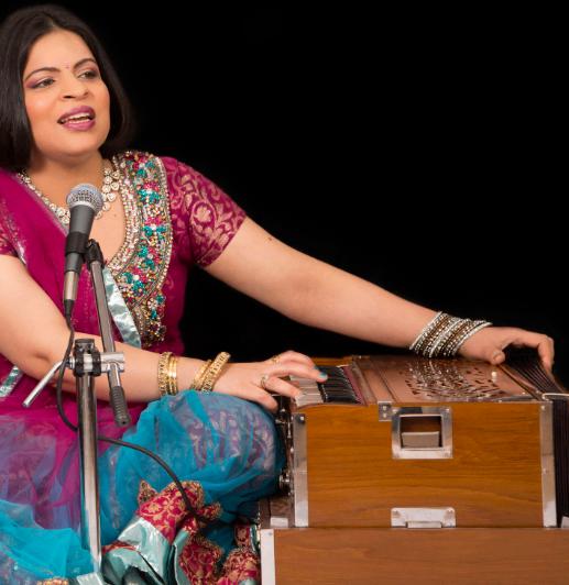 AclassicalBharatanatyamdanceconcertwith livemusicians.