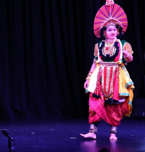 PERFORMANCEBY KEREMANESRIDHAR HEGDEANDTEAM (Sat4March,detailstbc) Yakshaganaisatraditionaldance theatreformformSouth Karnatakawhichfeatures elaboratecostumes,makeupand maskstodepictIndian mythologicalstories.Watcha stunningdisplaybyfourth generationYakshaganaartist KermaneSridharHegdeandhis team.