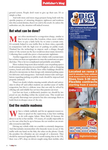ost often mentioned is a congestion charge, similar to that levied in cities like London, where most vehicles have to pay a fairly hefty fee to enter a certain zone. It’s certainly helped to ease traffic flow in those cities, especially in conjunction with the high cost of parking on public roads. Thailand has the technology to impose such a charge, though critics of the system say the fees would not deter many motorists. Collecting fines could also prove a bureaucratic nightmare. Another suggestion is to allow only vehicles with a certain number or letter on their car registration to enter the central area on specified days. This is far too complicated and probably unworkable. More realistic long-term ideas include a tax on parking spaces in all commercial properties in central Bangkok, such as shopping centres, hotels and office blocks. New office buildings should be allowed to incorporate in their design only minimal parking space for deliveries and emergencies. And much stricter rules and regulations regarding parking on public roads should be imposed and properly enforced. There’s no doubt vehicles massing outside schools and universities to drop off and collect students are another cause of traffic congestion, but this is a delicate issue that can only be solved by offering safe and reliable bus services that parents can trust. Last but not least, a deliberately punitive tax should be imposed on any dwelling within the central zone. This would not only greatly discourage new projects but also encourage them to build them in cheaper areas of the city.