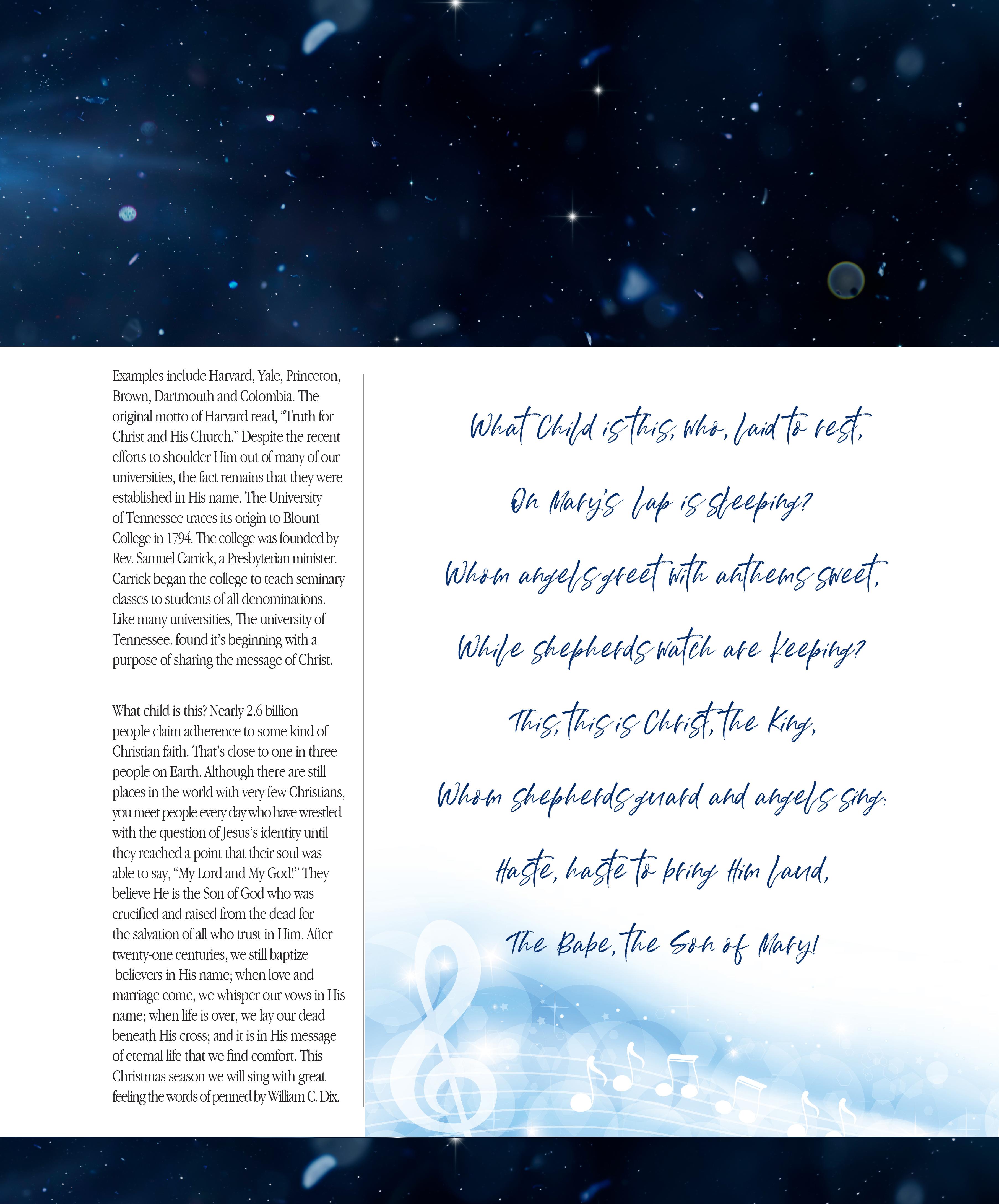 This holiday issue of Farragut Life beautifully reflects that same spirit. Within these pages, you’ll find remarkable stories of kindness, service, and community, stories that celebrate the people and events that make Monroe County shine a little brighter during the holidays. From festive gatherings and cherished traditions to acts of generosity that capture the true meaning of the season, this issue is a joyful reminder of all there is to be grateful for.