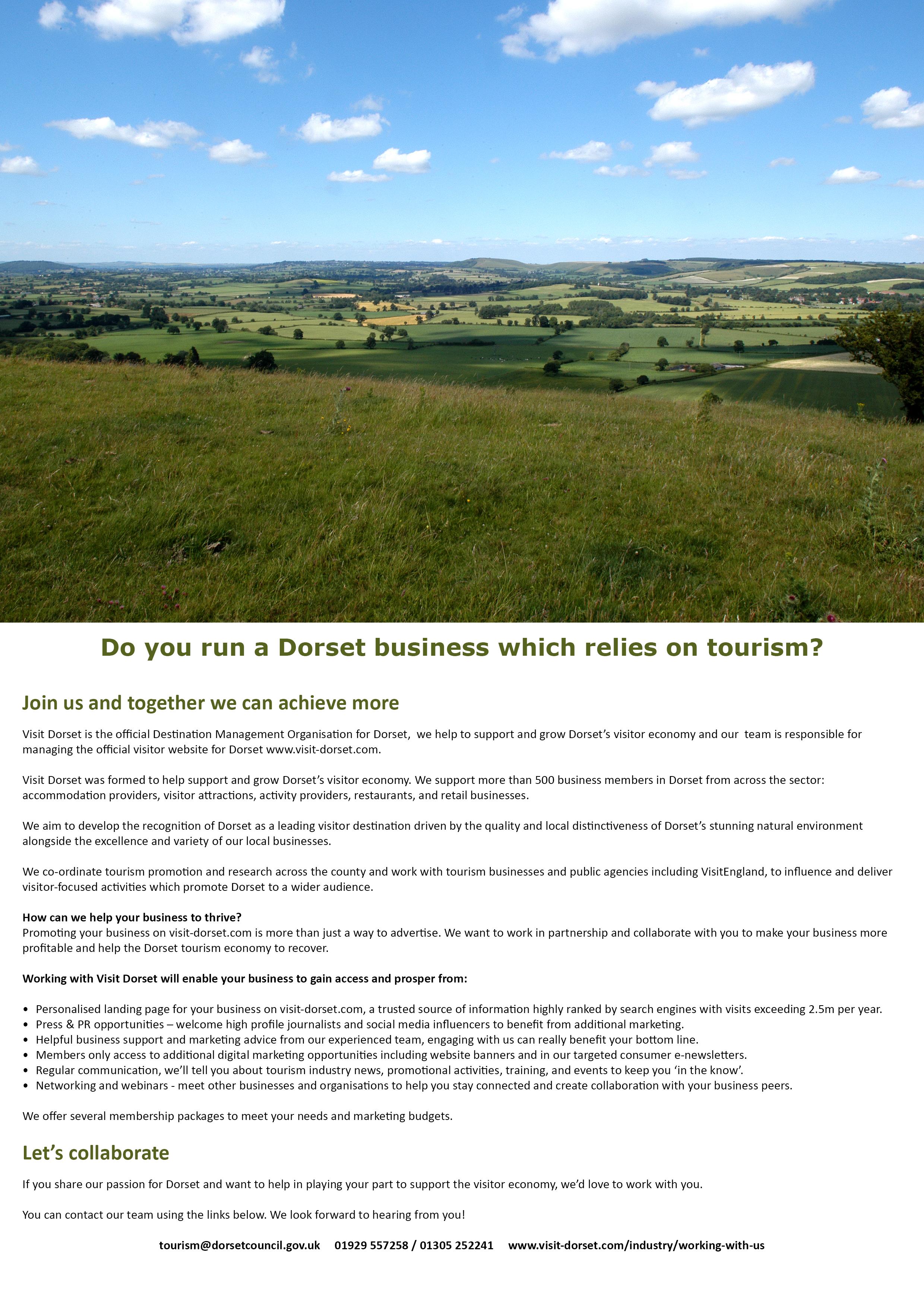 support Dorset businesses. I am very keen to hear how Dorset business are faring in the current climate. I’d like to hear about your specific concerns – and to see where we can help, whether through our lobbying or business support.