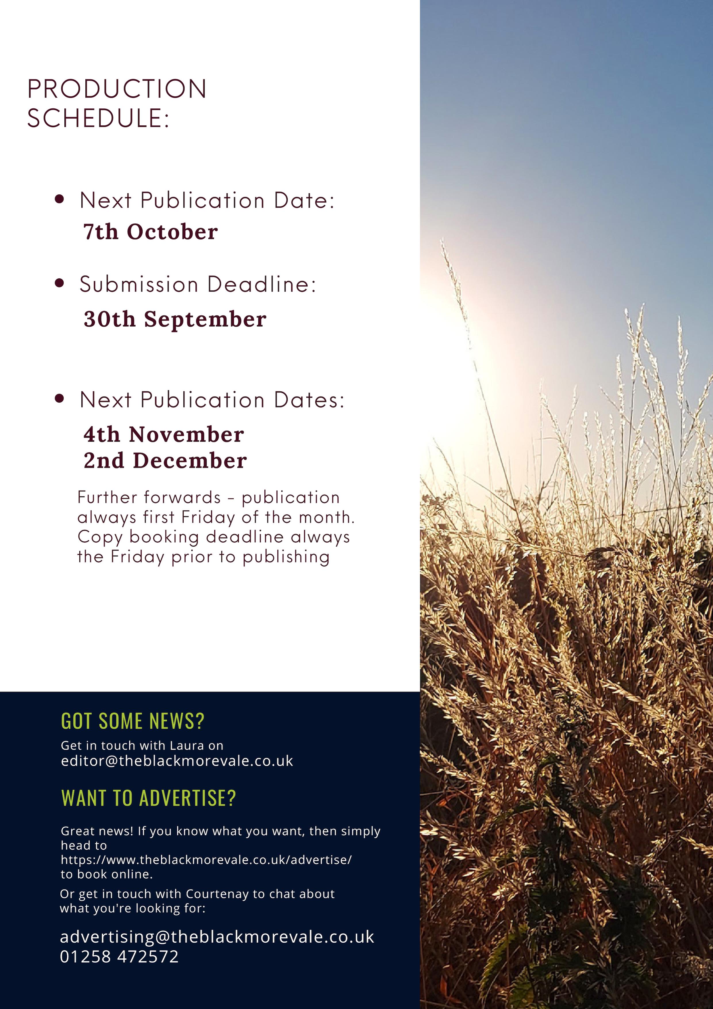 ... Contact The BV Team: Editor: Laura Hitchcock editor@theblackmorevale.co.uk Advertising: Courtenay Hitchcock advertising@theblackmorevale.co.uk Sub-editors: Gay Pirrie-Weir Fanny Charles Everything else: Try