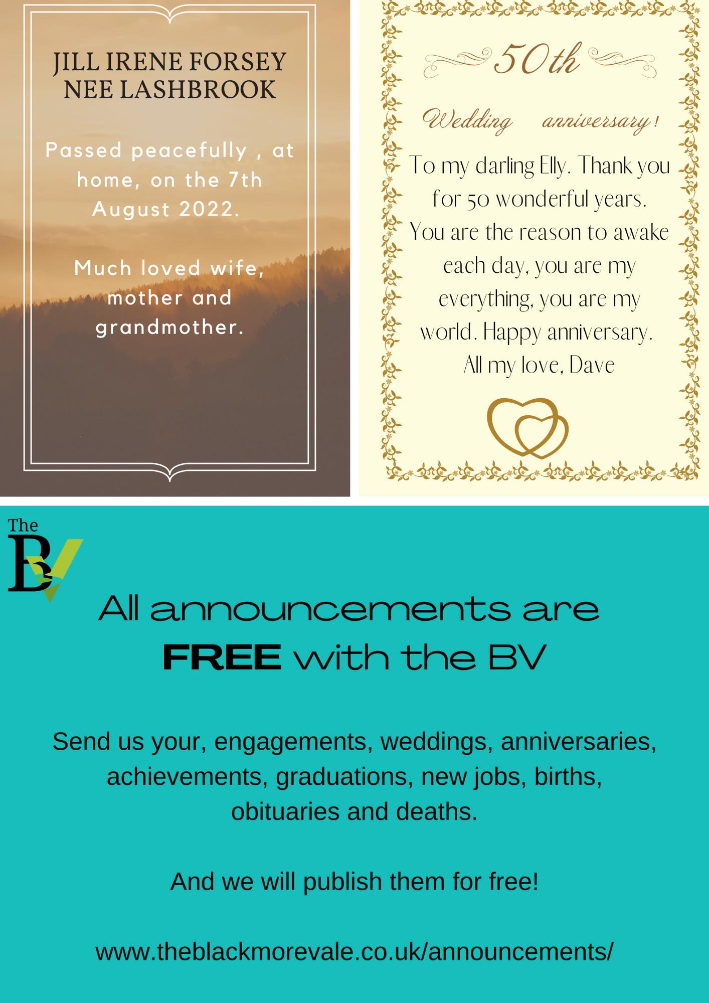 124 The BV magazine, September ‘22 ANNOUNCEMENTS